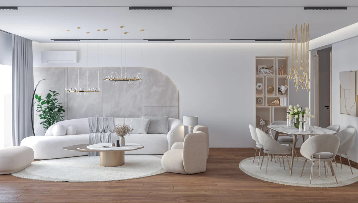 شقة مصمّمة بأسلوب الغيوم، تُشعر ساكنها وكأنّه يحلّق في فضاء من الرقي والاتساع والاسترخاء