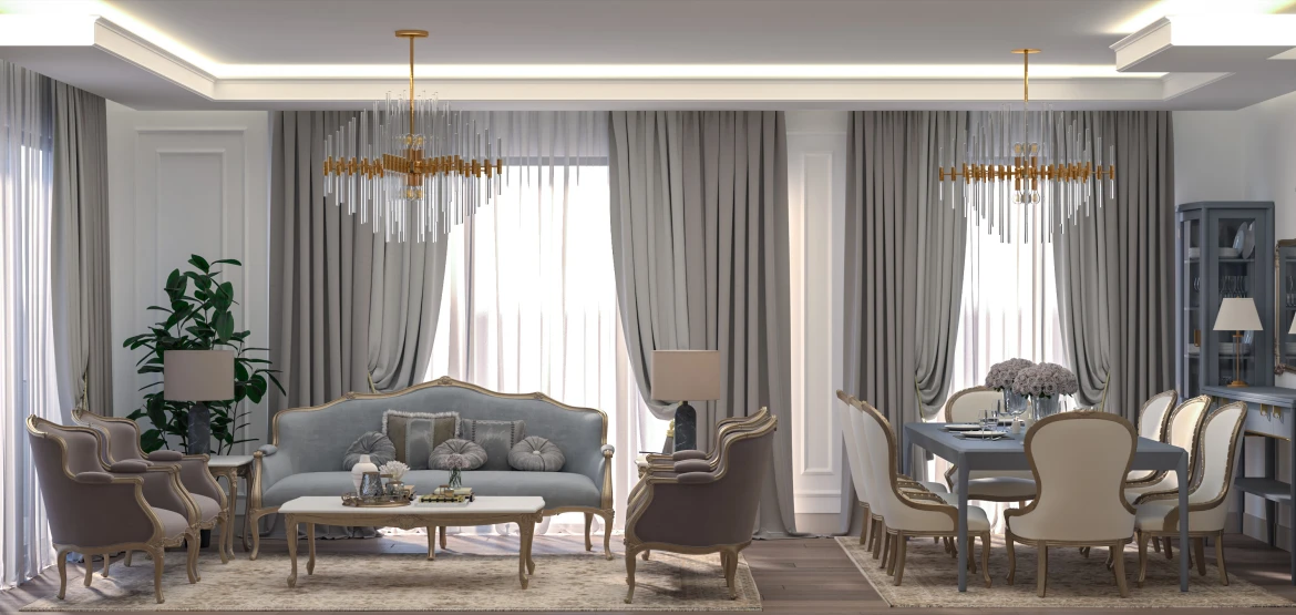 بإيقاع جميل وهمة عالية أُنجز العمل على الشقة الراقية في الوقت المحدد، وكسبنا أهم ما نسعى إليه وهو راحة عميلنا ورضاه التام، ثم استمتاعه وسروره بالمساحة المريحة والأنيقة التي تلبي جميع الاحتياجات اليومية، وتعكس الفخامة والرقي في كل زاوية.
