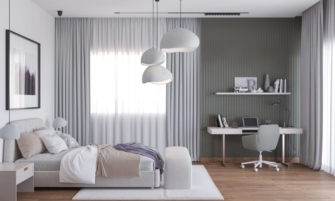 برای افزودن حس خلاقانه، عناصری الهام گرفته از ابرها را در جزئیات طراحی وارد کرده ایم، مانند پرده های شفاف که به آرامی آویزان می شوند، مبلمان با اشکال منحنی و گرد و لوازم جانبی با اشکال هندسی نرم در آن استفاده شده است.