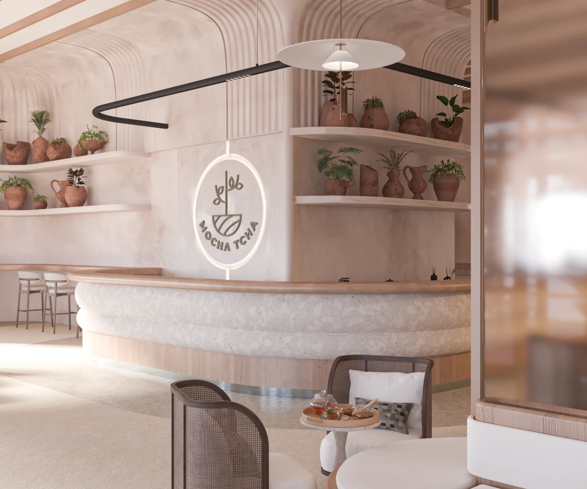 The café idea fully harmonizes with nature, drawing inspiration from the stunning beauty of Japanese tea fields. At Decorner we embody their vibrant colors and magnificent shapes to create a unique experience that transports visitors to a world of relaxation and tranquility, fostering a deep connection with nature and rejuvenation.