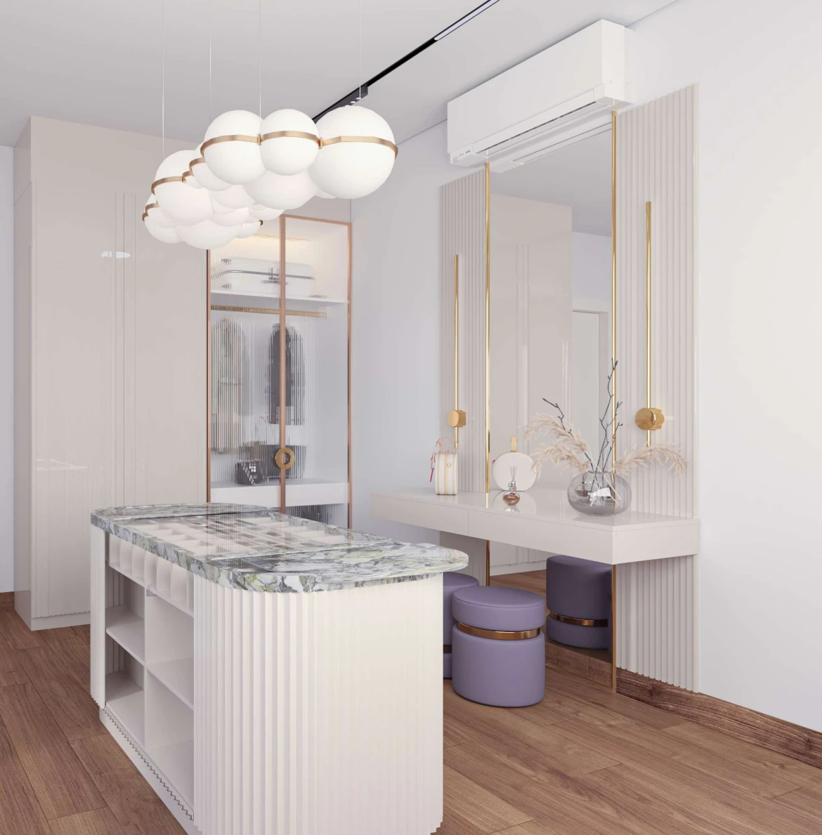 With all this beauty, quality comes in parallel. We utilized marble, the finest woods, and golden steel to give the apartment a touch of luxury and elegance.